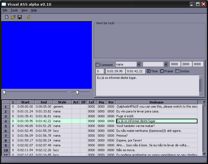 The important part here is what’s above the subtitle editing area: Where the audio box sits today is space for a toolbox. The intention was to add visual typesetting tools there.