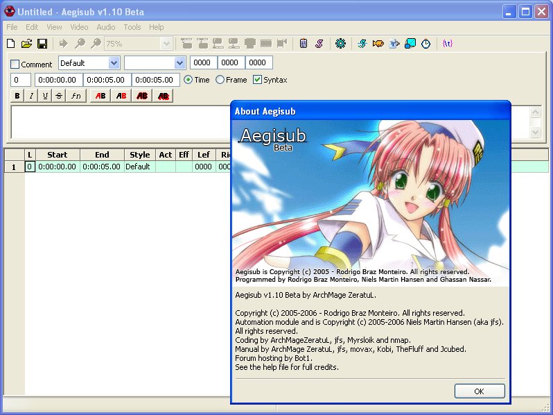The installer for Aegisub 1.00 was 2.82 MB, the installer for Aegisub 2.1.7 on Windows will be close to 24 MB. We’ve come a long way since that day in June 2005.